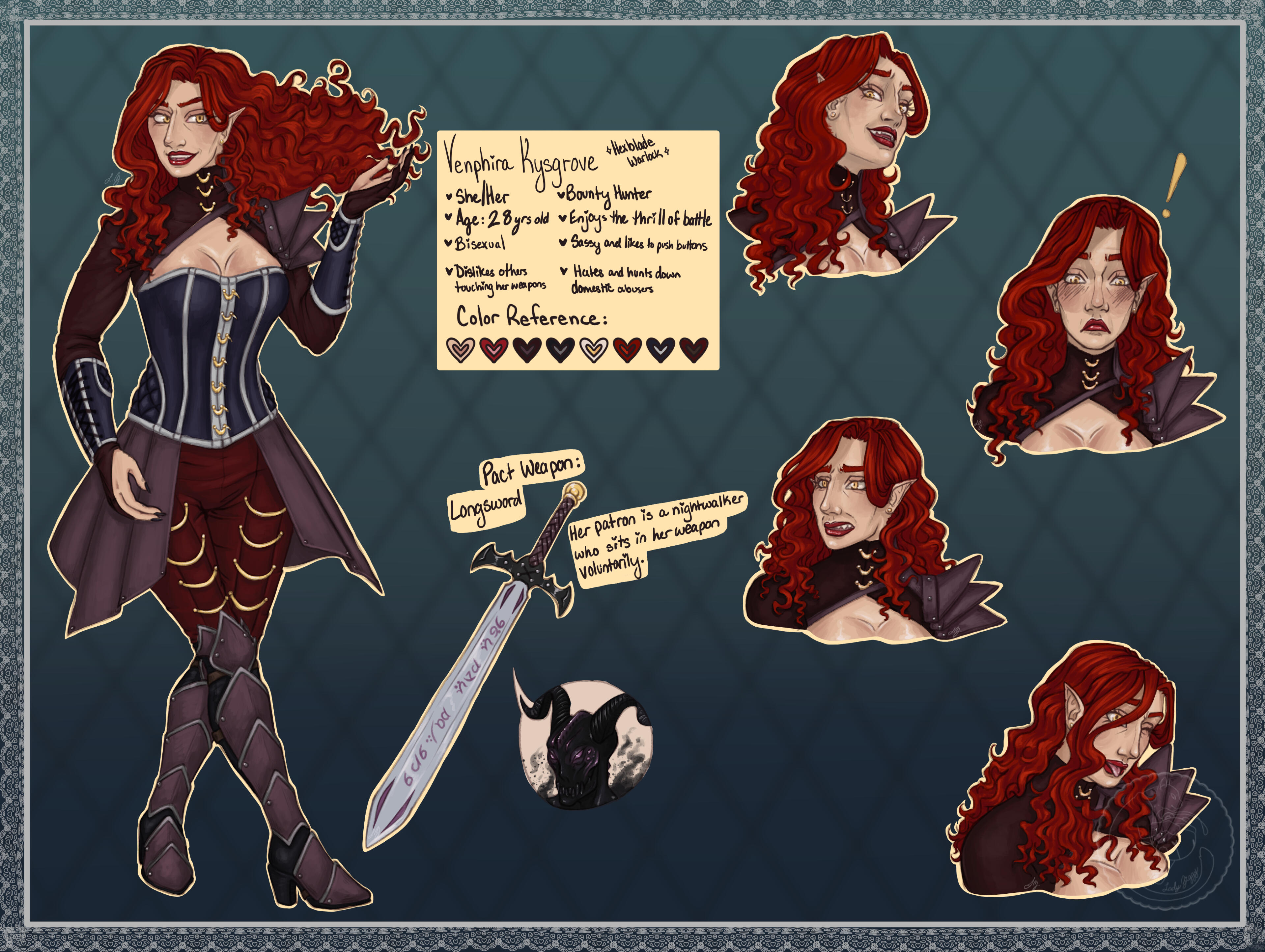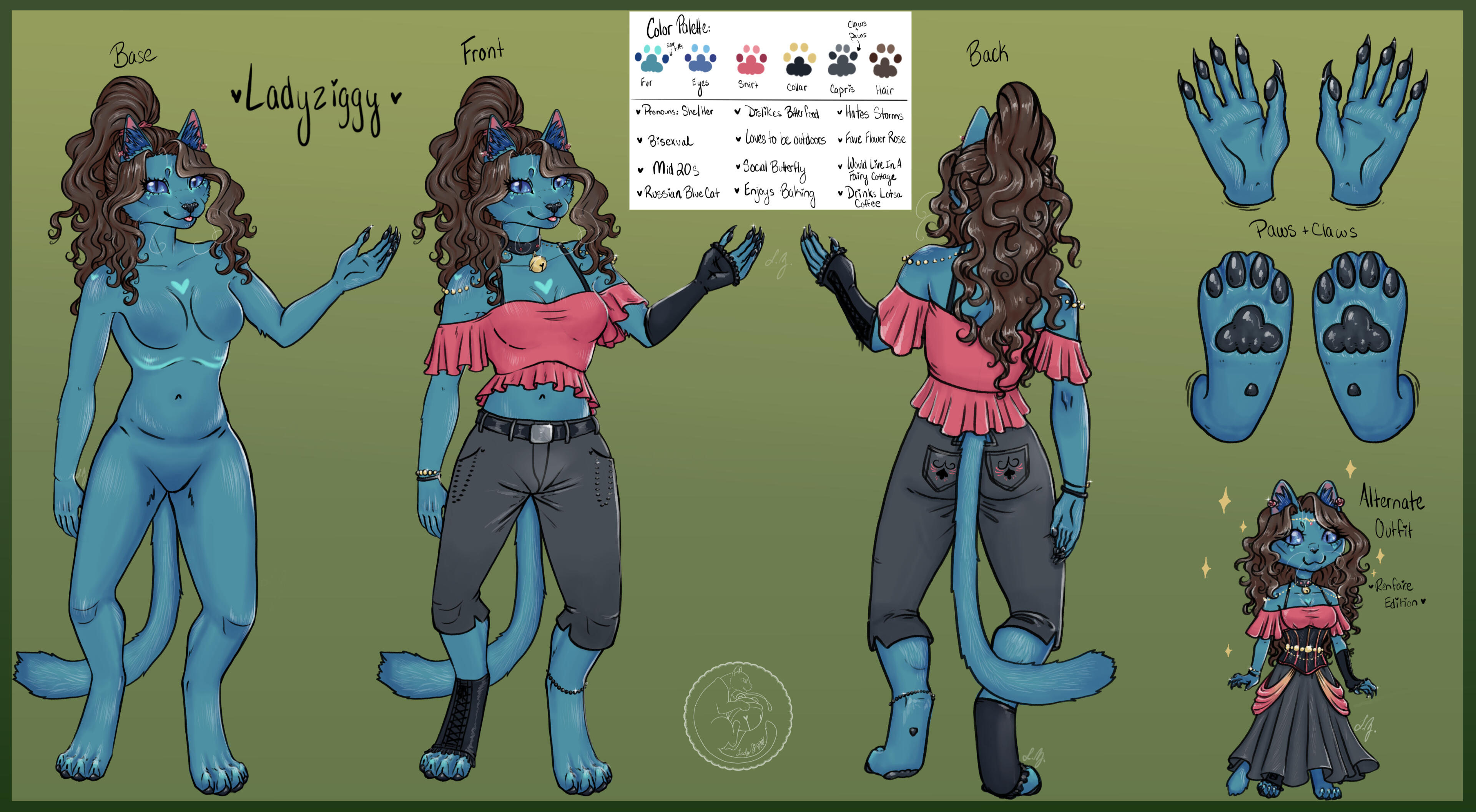 ⋆。°✩ Reference Sheets start with one fullbody a box of information, a color palette, and three small extras.⋆。°✩ Extras can be headshots, paws, chibi, weapons, mounts, more fullbodies and other accessories.TAT(Turn Around Time): ~ 2-4 weeks